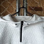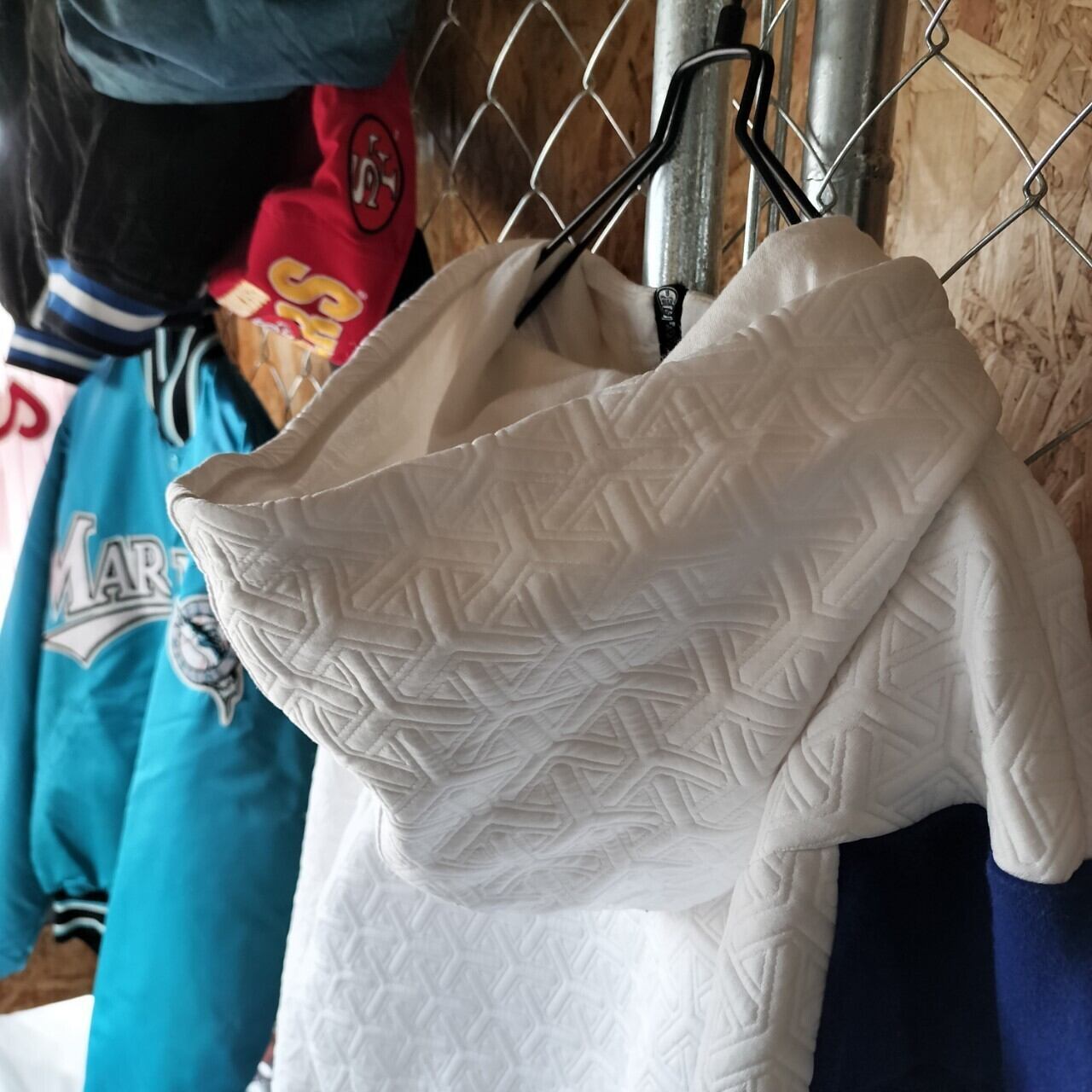 袖に汚れ・フロントや袖リブにうっすらシミ・襟裏に若干の変色が見られます。