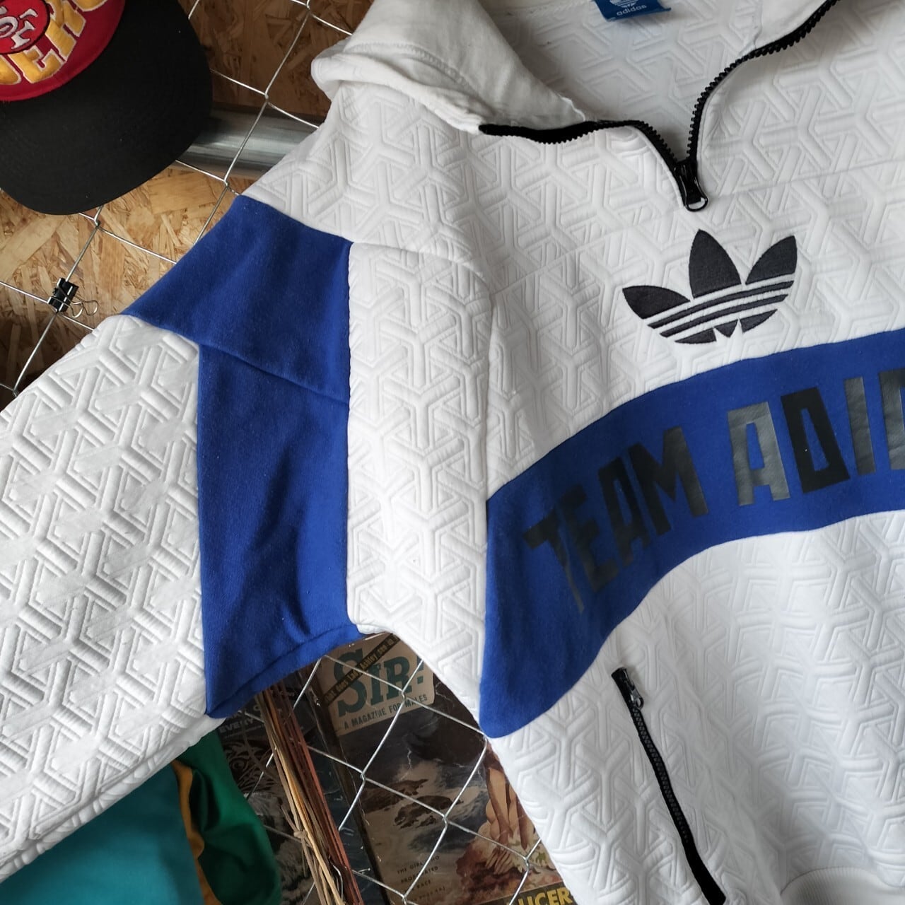 adidas アディダス チームアディダス ビッグロゴ トレフォイル ハーフジップ スウェット トレーナー ユニセックス ストリート アメカジ 古着 【V310】
