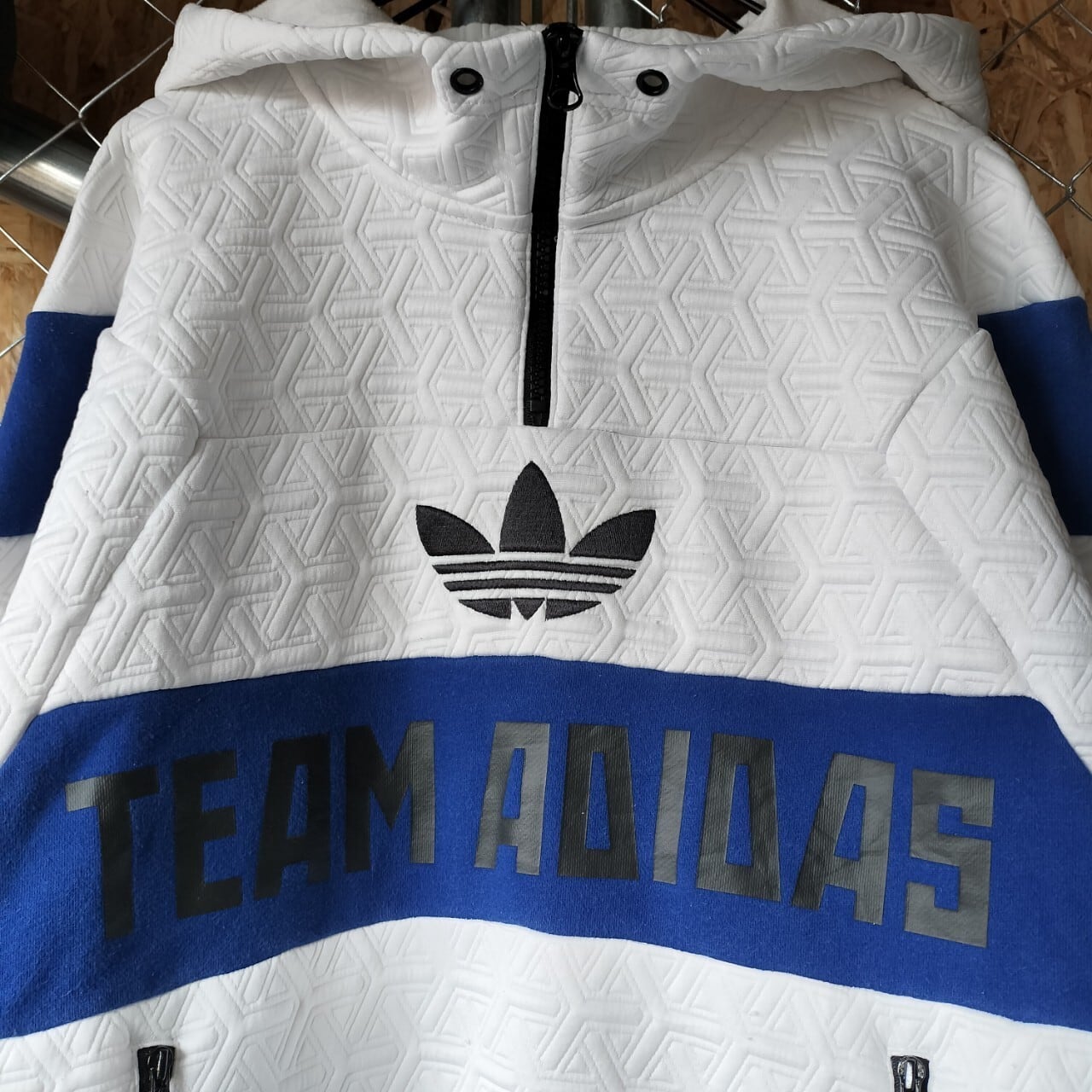 ■ adidas アディダス チームアディダス ビッグロゴ トレフォイル ハーフジップ スウェット トレーナー ユニセックス ストリート アメカジ 古着 【V310】
