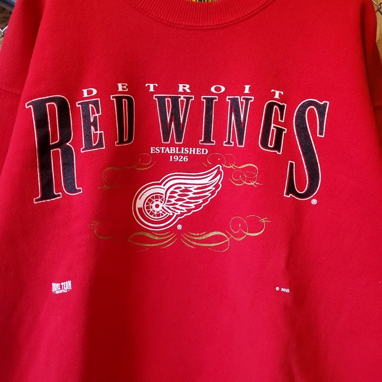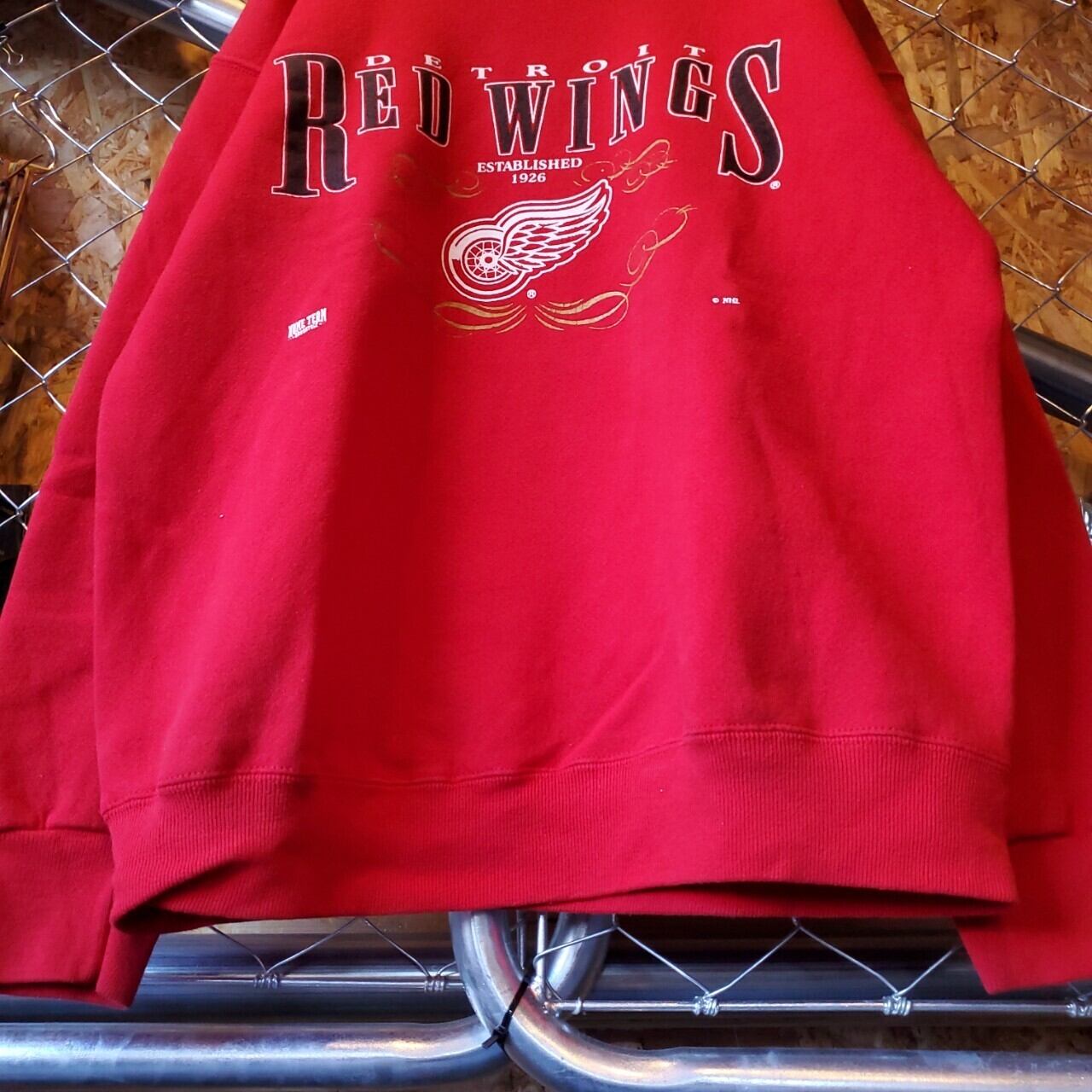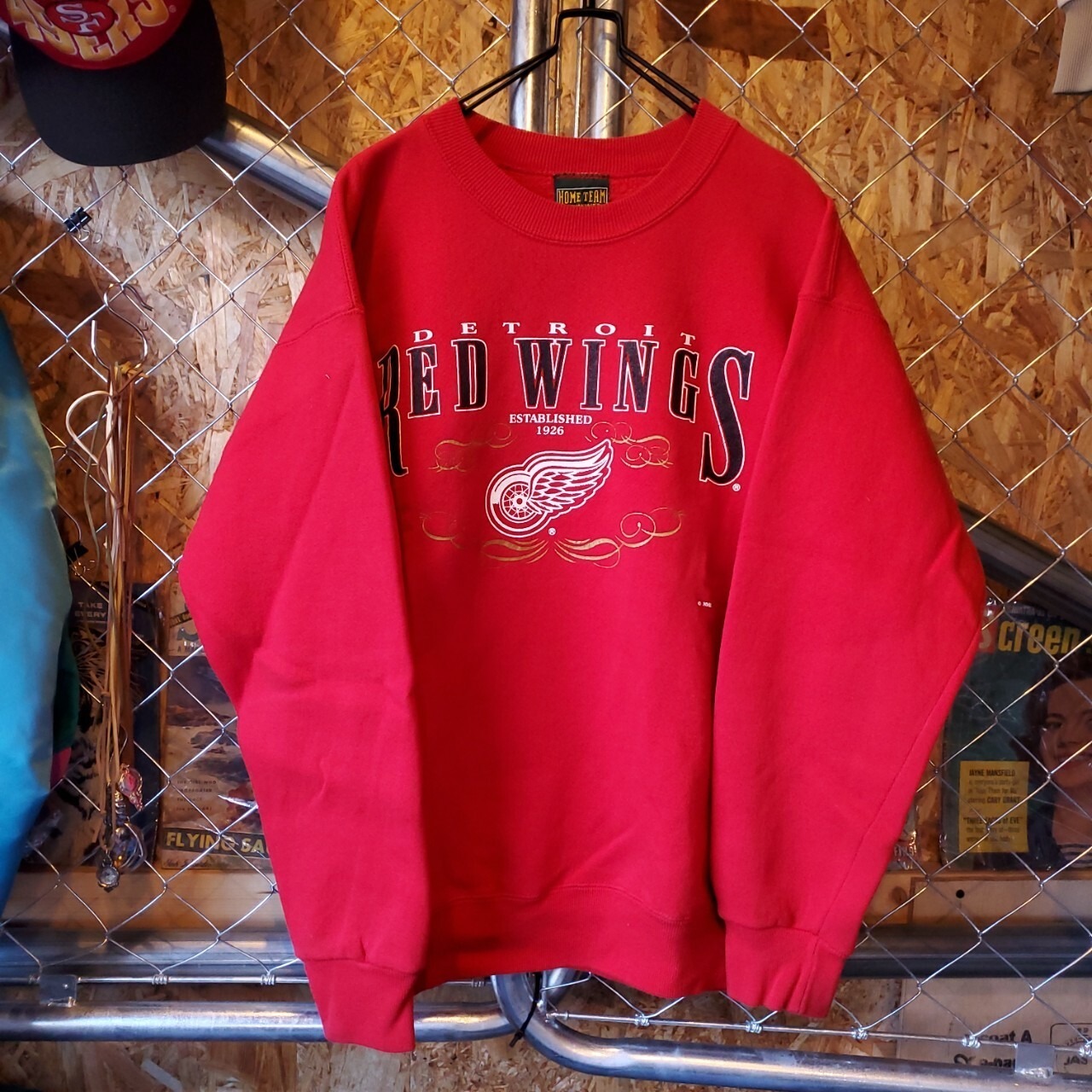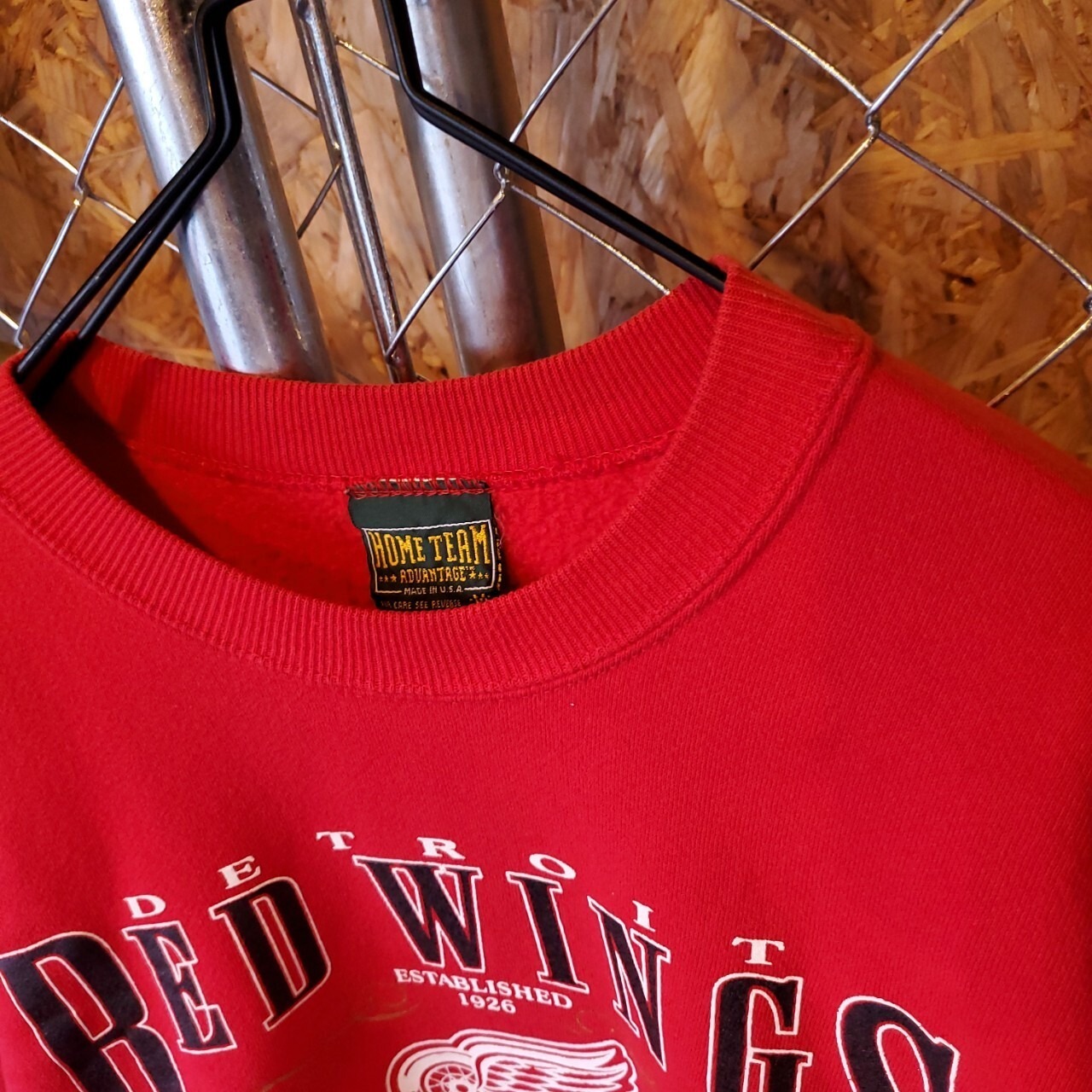 ■ NUTMEG HOME TEAM 90s USA製 ヴィンテージ NHL デトロイトレッドウィングス スウェット トレーナー 人気カラー レッド ユニセックス ストリート アメカジ 古着 【V330】