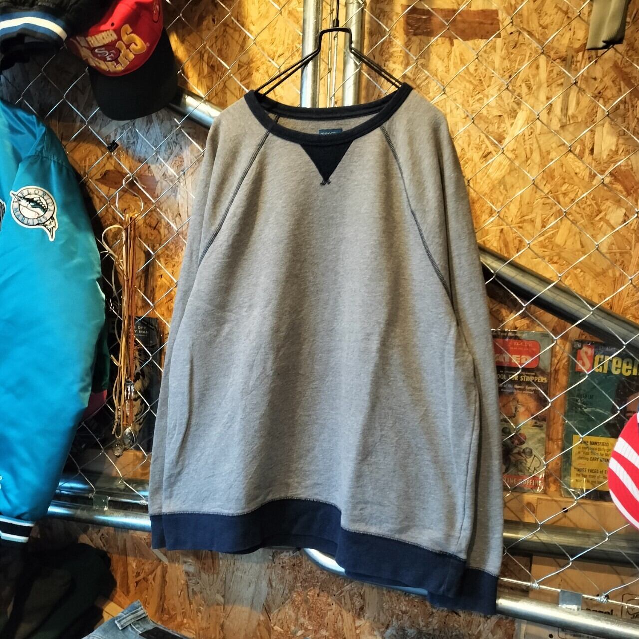■ ヴィンテージ レトロ ラグラン スウェット トレーナー 人気カラー グレー ユニセックス ビッグサイズ アメカジ ストリート 古着 【V336】