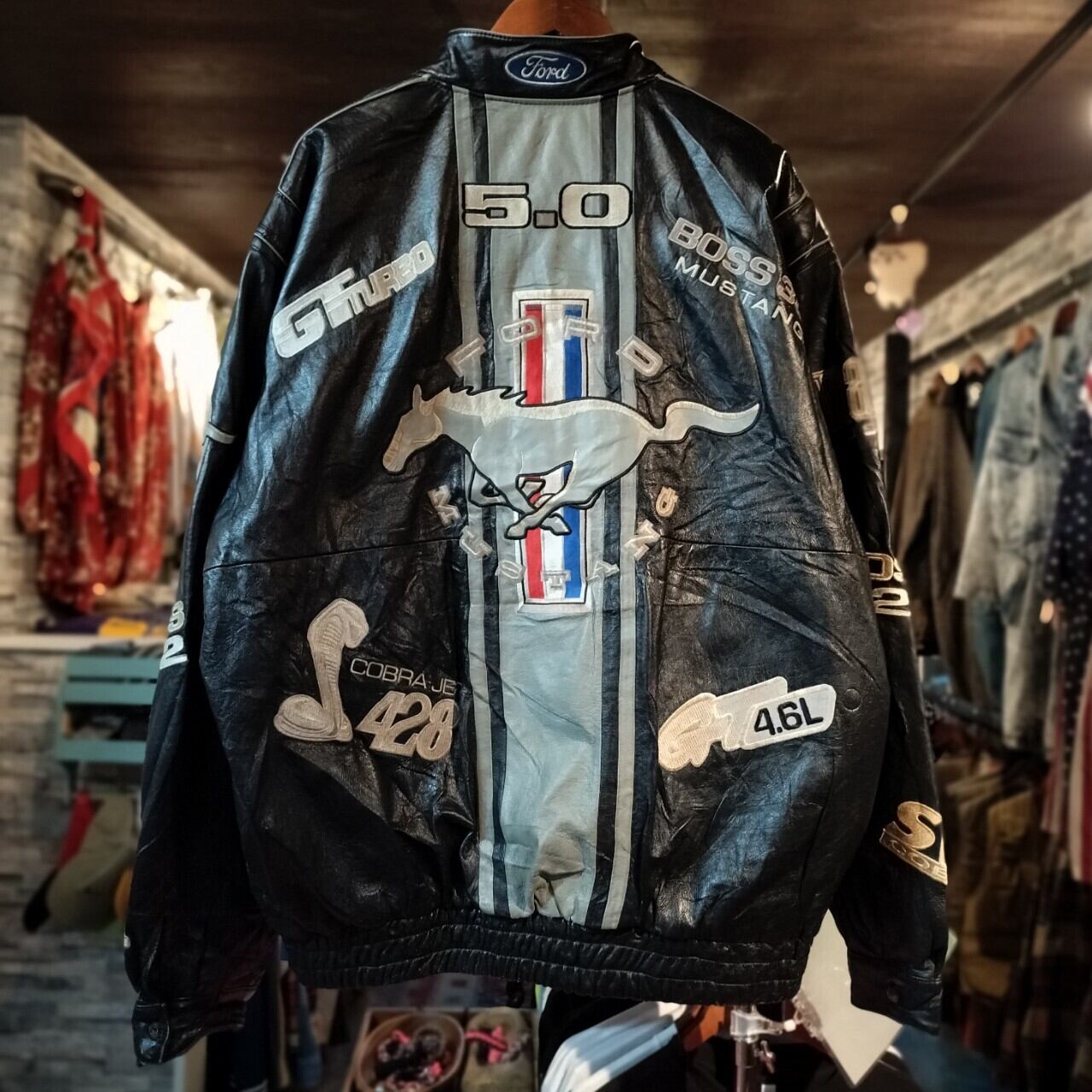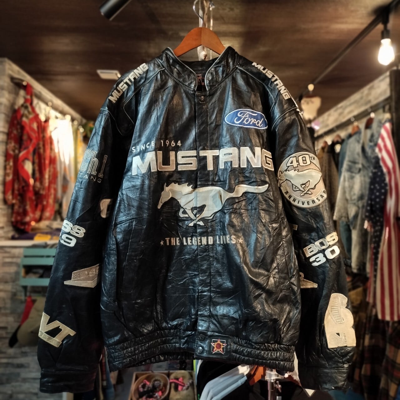■ Ford マスタング レザージャケット レーシングジャケット ブルソン ジェフハミルトン XL アメリカ古着 【B59】